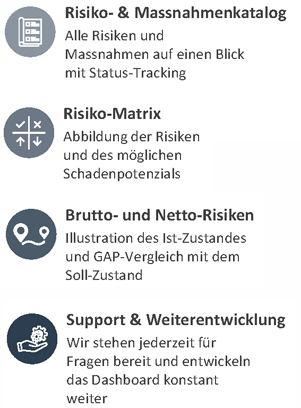 Die Umset­zung des Risiko­man­age­ments für KMU-Unternehmungen leis­tet einen wesentlichen Beitrag zur Erfül­lung der geset­zlichen Auflage gemäss Art. 716a OR, wonach der Ver­wal­tungsrat als Ober­leitung der Gesellschaft zur Aus­gestal­tung des Rech­nungswe­sens, der  Erstat­tung des Jahres­berichts, der Finanzkon­trolle und zur Führung der Gesellschaft verpflichtet ist.